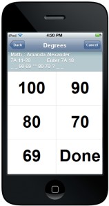 An important requirement for the application was the speed of entering the data. Its UI was highly optimized to meet this requirement. As a result the user can enter a score of a test of a student with a few taps on the screen, without having to type anything with a virtual keyboard.